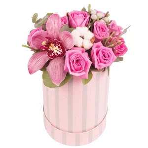 Любимой маме - шляпная коробка с розовыми и кремовыми кустовыми розамиот 7 436 руб. 7 654 руб.Купить