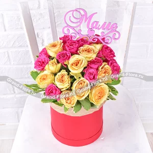 Любимой маме - шляпная коробка с розовыми и кремовыми кустовыми розамиот 7 436 руб. 7 654 руб.Купить