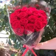 Свежий, хороший букет, розы 70 см как и написано, даже пахнут! Спасибо!