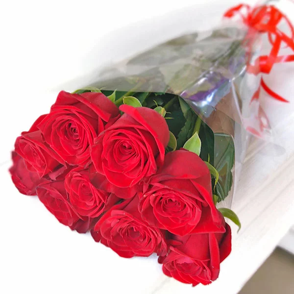 Роза красная 70 см - 11 шт, упаковка, лента. На фото представлен букет из 9 роз.