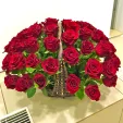 Выбрали 51 розу. Заказали доставку по случаю юбилея нашего руководителя и очень рады что выбрали именно эту компанию! Все соответствует фото на сайте: светлая корзина и отменные, крупные красные розы.