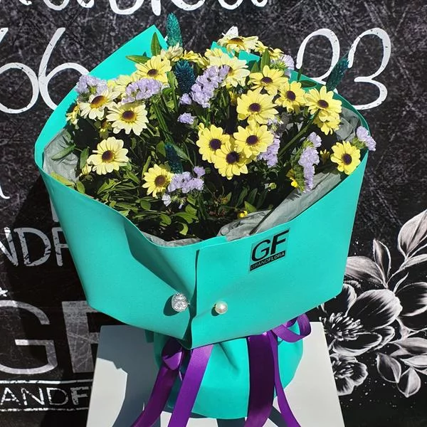 Бирюзовое лето – букет новинка из желтых хризантем